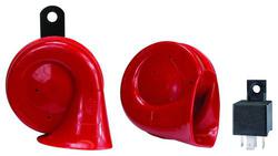 Compare Maximum number of 4 items selected Hella 115 dB Air Horn Kit - 003001981 Part #: 003001981 Line: HLA Hella 115 dB Air Horn Kit 1 Year Limited Warranty Color: Black, Red Diameter (in): 2-13/16 Inch Diameter (mm): 77mm Length (in): 6-1/4, 6-9/16, 8-9/16 Inch Hardware Included: Yes Terminal Type: Blade Bracket Included: Yes Attachment Method: Bolt-On Voltage (V): 12 Volt Frequency (Hz): 600 Hz Number Of Terminals: 2 Amperage (A): 21 Amp Sound Type: High, Middle, Low Decibel Rating (dB): 115 dB Show More Show Less