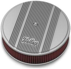 Compare Maximum number of 4 items selected Holley Air Cleaner - 120-160 Part #: 120-160 Line: HLY Holley Air Cleaner 90 Day Limited Warranty Finish: Natural Material: Aluminum, Steel Outside Diameter (in): 14 Inch Nut Included: Yes Air Filter Shape: Round Washable: Yes Air Filter Color: Red Air Filter Height (in): 3 Inch Wing Nut Included: Yes Filter Media: Cotton Gauze Carb/Air Horn Diameter (in): 5-1/8 Inch Show More Show Less