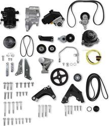 Compare Maximum number of 4 items selected Holley Accessory Drive Component Mount Set - 20-160BK Part #: 20-160BK Line: HLY Holley Accessory Drive Component Mount Set 90 Day Limited Warranty Material: Cast Aluminum Pulley Type: Serpentine Water Pump Included: No Belt Included: Yes Thermostat Included: No Tensioner Included: Yes Water Pump Pulley Included: No Power Steering Pump Pulley Included: No Power Steering Pump Included: No Show More Show Less