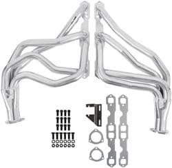 Compare Maximum number of 4 items selected Hooker Super Competition Mild Steel Exhaust Header - 2452-1HKR Part #: 2452-1HKR Line: HKR Hooker Super Competition Mild Steel Exhaust Header Manufacturer's Defect Warranty Color: Silver Finish: Ceramic Coated Material: Mild Steel Port Shape: Oval Style: Long Tube Hardware Included: Yes Tube Size (in): 1-5/8 Inch Collector Size (in): 2-1/2 Inch Gasket Or Seal Included: Yes Head Flange Thickness (in): 5/16 Inch Tube Direction: Down-Swept Engine Make/Size: Chevrolet Small Block 262 To 400 Show More Show Less