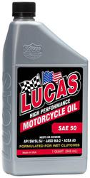 Compare Maximum number of 4 items selected Representative Image Lucas Conventional Motorcycle Motor Oil 50W 1 Quart - 10712 Part #: 10712 Line: LUC Lucas Conventional Motorcycle Motor Oil 50W 1 Quart Manufacturer's Defect Warranty Viscosity Index: 125 Racing: No 2 Cycle: No 4 Cycle: Yes Container Size: 1 Quart Oil Composition: Conventional Viscosity Grade/Weight: 50W Show More Show Less