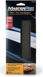 Compare Maximum number of 4 items selected MasterPro Refinishing Sandpaper - 41-867 Part #: 41-867 Line: MPR MasterPro Refinishing Sandpaper Manufacturer's Defect Warranty Color: Black Grade: Medium Material: Silicone Carbide Quantity: 5 Shape: Rectangle Type: Sheet Biodegradable: No Waterproof: Yes Dimensions (in): 3-11/16 X 9 Inch Abrasive Type: Sheet Sanding Surface: Fiberglass, Metal Wet Or Dry: Dry, Wet Show More Show Less