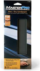 Compare Maximum number of 4 items selected MasterPro Refinishing 1200 Grit Sandpaper - 41-868 Part #: 41-868 Line: MPR MasterPro Refinishing 1200 Grit Sandpaper Manufacturer's Defect Warranty Color: Black Grit: 1200 Grit Material: Silicone Carbide Quantity: 5 Type: Sheet Dimensions (in): 3-11/16 X 9 Inch Sanding Surface: Fiberglass, Metal Wet Or Dry: Dry, Wet Show More Show Less