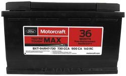 Compare Maximum number of 4 items selected Motorcraft Tested Tough MAX Standard Flooded Top Post Battery Group Size 94R H7 730 CCA 140 Minute RC - BXT94RH7730 Part #: BXT94RH7730 Line: MOT Motorcraft Tested Tough MAX Standard Flooded Top Post Battery Group Size 94R H7 730 CCA 140 Minute RC 3 Year Limited Warranty Battery Type: Standard Flooded Height (in): 7-1/2 Inch Height (mm): 190mm Length (in): 12-7/16 Inch Length (mm): 315mm Width (in): 6-15/16 Inch Width (mm): 175mm Terminal Type: Top Post Weight (Lbs): 45.2 Lbs. Voltage (V): 12 Volt Cold Cranking Amps (CCA): 730 CCA Cranking Amps (CA): 900 CA Group Size (BCI): 94R Reserve Capacity (min): 140 Minute Amp Hour (Ah): 80 Ah Positive Terminal Location: Top Right Group Size (DIN): H7 Add Acid And Charge Required: No Show More Show Less