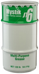 Compare Maximum number of 4 items selected Mystik 120 Lbs. Multi-Purpose Grease - JT6-14-120 Part #: JT6-14-120 Line: MYS Mystik 120 Lbs. Multi-Purpose Grease Manufacturer's Defect Warranty Color: Amber Water Resistant: Yes Biodegradable: Yes Maximum Pressure (psi): 55 psi Temperature Range (Deg F): 0 To 250 Degree Grease Type: Anhydrous Calcium Container Size: 120 Lbs. Show More Show Less
