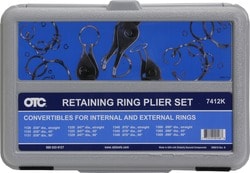 Compare Maximum number of 4 items selected OTC Snap Ring Pliers - 7412K Part #: 7412K Line: OTC OTC Snap Ring Pliers 1 Year Limited Warranty Material: Rubber Length (in): 6 To 10 Inch Tip Size (in): 3/8, 1/16, 11/16, 1/8 Inch Number Of Tips: 4 Tip Angle (Deg): 45, 90 Degree, Straight Show More Show Less