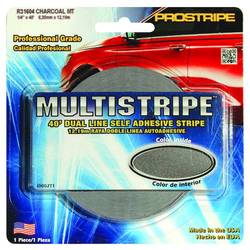 Compare Maximum number of 4 items selected Prostripe 1/4 Inch x 40 Foot Charcoal Metallic Striping Tape - R31604 Part #: R31604 Line: TRM Prostripe 1/4 Inch x 40 Foot Charcoal Metallic Striping Tape 1 Year Limited Warranty Color: Charcoal Metallic Length (ft): 40 Foot Material: Vinyl Quantity: 1 Type: Roll Width (in): 1/4 Inch Waterproof: Yes CSA Certified: No Show More Show Less