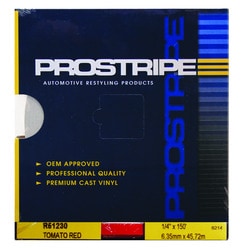 Compare Maximum number of 4 items selected Prostripe Vinyl Striping Tape - R24430 Part #: R24430 Line: TRM Prostripe Vinyl Striping Tape Manufacturer's Defect Warranty Color: Tomato Red Length (ft): 50 Foot Length (in): 600 Inch Width (in): 1 Inch Show More Show Less