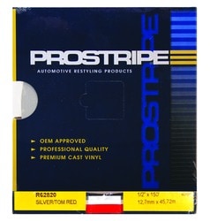 Compare Maximum number of 4 items selected Prostripe 3/16 Inch x 150 Foot Silver Metallic, Tomato Red Striping Tape - R41120 Part #: R41120 Line: TRM Prostripe 3/16 Inch x 150 Foot Silver Metallic, Tomato Red Striping Tape 1 Year Limited Warranty Color: Silver Metallic, Tomato Red Length (ft): 150 Foot Material: Vinyl Quantity: 1 Type: Roll Width (in): 3/16 Inch Waterproof: Yes CSA Certified: No Show More Show Less