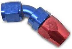 Compare Maximum number of 4 items selected Representative Image Russell -8AN 45 Degree Hose End Fitting - 610100 Part #: 610100 Line: RUS Russell -8AN 45 Degree Hose End Fitting 1 Year Limited Warranty Color: Blue, Red Fitting Type: Crimp Fitting Material: Aluminum Fitting Size: -8AN Bend Angle (Deg): 45 Degree Swivel: Yes Show More Show Less