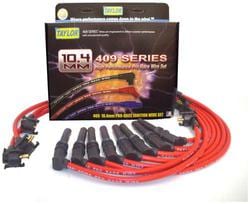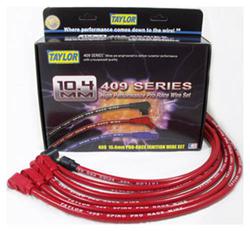Compare Maximum number of 4 items selected Taylor Cable Products 409 Spiro Pro Ignition Wire Set - 79606 Part #: 79606 Line: TAY Taylor Cable Products 409 Spiro Pro Ignition Wire Set 90 Day Limited Warranty Diameter (mm): 10.4mm Core Material: Stainless Steel Noise Suppression: Yes Wire Separators Included: No Resistance (Ohm/ft): 350 Ohm/Foot Spark Plug Boot Material: Silicone Show More Show Less