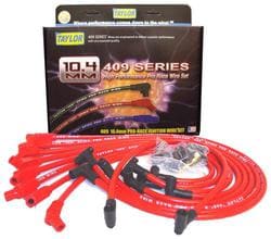 Compare Maximum number of 4 items selected Taylor Cable Products 409 Spiro Pro Ignition Wire Set - 79285 Part #: 79285 Line: TAY Taylor Cable Products 409 Spiro Pro Ignition Wire Set 90 Day Limited Warranty Diameter (mm): 10.4mm Core Material: Stainless Steel Noise Suppression: Yes Wire Separators Included: No Resistance (Ohm/ft): 350 Ohm/Foot Spark Plug Boot Material: Silicone Show More Show Less