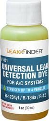 Compare Maximum number of 4 items selected Tracer Products LeakFinder Universal A/C Dye Bottle - LF1001 Part #: LF1001 Line: TRC Tracer Products LeakFinder Universal A/C Dye Bottle 90 Day Limited Warranty Color: Green Oil Type: Ester Quantity: 6 Type: Dye Hose Included: No Refrigerant Type: R12, R134a, R1234YF Storage Case Included: No Light Included: No Container Size: 1 Ounce Refrigerant Compatibility: R134a, R1234YF Dye Cartridge Included: No Fluorescent Dye: Yes Show More Show Less