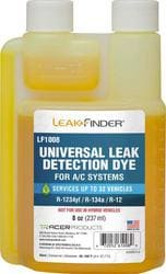 Compare Maximum number of 4 items selected Tracer Products LeakFinder Universal A/C Dye Bottle - LF1008 Part #: LF1008 Line: TRC Tracer Products LeakFinder Universal A/C Dye Bottle 90 Day Limited Warranty Color: Green Oil Type: Ester Quantity: 1 Type: Dye Hose Included: No Storage Case Included: No Light Included: No Container Size: 8 Ounce Refrigerant Compatibility: R134a, R1234YF Dye Cartridge Included: No Fluorescent Dye: Yes Show More Show Less