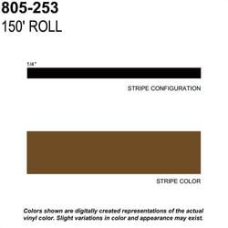 Compare Maximum number of 4 items selected Trimbrite Prostripe 1/4 Inch x 150 Foot Chocolate Brown Striping Tape - 805-953 Part #: 805-953 Line: TRM Trimbrite Prostripe 1/4 Inch x 150 Foot Chocolate Brown Striping Tape 1 Year Limited Warranty Color: Chocolate Brown Length (ft): 150 Foot Material: Vinyl Quantity: 1 Type: Roll Width (in): 1/4 Inch Width (mm): 6mm Waterproof: Yes Show More Show Less