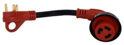 Compare Maximum number of 4 items selected Valterra 30 Amp Adapter Cord - A10-3030D90VP Part #: A10-3030D90VP Line: VAT Valterra 30 Amp Adapter Cord 1 Year Limited Warranty Color: Black Length (ft): 1 Foot Material: PVC Length (in): 12 Inch Wire Gauge (ga): 10/3 Gauge Amperage (A): 30 Amp Show More Show Less