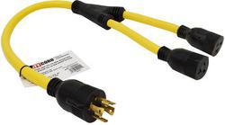 Compare Maximum number of 4 items selected Valterra 30 Amp To 15 Amp Y-Adapter Cord - A10G30420Y Part #: A10G30420Y Line: VAT Valterra 30 Amp To 15 Amp Y-Adapter Cord 1 Year Limited Warranty Color: Yellow Length (ft): 3 Foot Material: PVC Length (in): 36 Inch Wire Gauge (ga): 10/3 Gauge Amperage (A): 15 To 30 Amp Show More Show Less