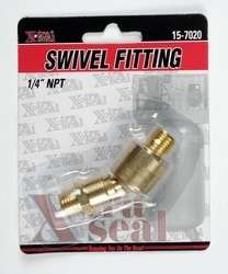 Compare Maximum number of 4 items selected Xtra Seal Swivel Fitting Male - 15-7020 Part #: 15-7020 Line: XTS Xtra Seal Swivel Fitting Male 90 Day Limited Warranty Adapter Type: Swivel Material: Brass Connector Gender: Male Fitting Angle (Deg): Straight Show More Show Less