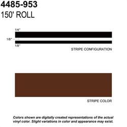 Compare Trimbrite Prostripe 1/2 Inch x 150 Foot Brown Striping Tape - 4485-953 Part #: 4485-953 Line: TRM Trimbrite Prostripe 1/2 Inch x 150 Foot Brown Striping Tape 1 Year Limited Warranty Color: Brown Length (ft): 150 Foot Material: Vinyl Quantity: 1 Type: Roll Width (in): 1/2 Inch Width (mm): 13mm Waterproof: Yes Show More Show Less
