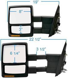 Compare Maximum number of 4 items selected K Source Fit System Mirror - 61217F Part #: 61217F Line: KSO K Source Fit System Mirror 90 Day Limited Warranty Location: Passenger Side Adjustment Type: Electric Heated: Yes Foldable: Yes Telescopic: Yes Finish: Textured Dimensions (in): 12 Inch Paintable: No Turn Signal Indicator Included: Yes Automatic Dimming: No Memory Included: No Power Folding: No Puddle Light Included: No Lane Departure Warning System Included: No Blind Spot Indicator: No Show More Show Less