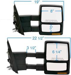 Compare Maximum number of 4 items selected K Source Fit System Mirror - 61185F Part #: 61185F Line: KSO K Source Fit System Mirror 90 Day Limited Warranty Location: Passenger Side Adjustment Type: Electric Heated: Yes Foldable: Yes Telescopic: Yes Finish: Textured Dimensions (in): 12 Inch Paintable: No Turn Signal Indicator Included: Yes Automatic Dimming: No Memory Included: No Power Folding: No Puddle Light Included: Yes Lane Departure Warning System Included: No Blind Spot Indicator: No Show More Show Less