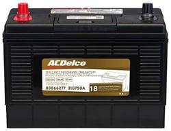 Compare ACDelco Standard Flooded Threaded Post Battery Group Size 31 750 CCA 180 Minute RC - 31G750T Part #: 31G750T Line: ACD ACDelco Standard Flooded Threaded Post Battery Group Size 31 750 CCA 180 Minute RC 18 Month Limited Warranty Battery Type: Standard Flooded Height (in): 9-5/16 Inch Height (mm): 237mm Length (in): 13 Inch Length (mm): 330mm Width (in): 6-13/16 Inch Width (mm): 172mm Terminal Type: Threaded Post Weight (Lbs): 58.7 Lbs. Voltage (V): 12 Volt Cold Cranking Amps (CCA): 750 CCA Cranking Amps (CA): 930 CA Group Size (BCI): 31 Reserve Capacity (min): 180 Minute Amp Hour (Ah): 99 Ah Positive Terminal Location: Top Left Show More Show Less