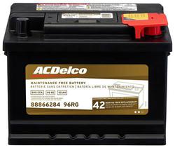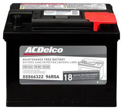 Compare ACDelco Standard Flooded Top Post Battery Group Size 96R 590 CCA 95 Minute RC - 96RSA Part #: 96RSA Line: ACD ACDelco Standard Flooded Top Post Battery Group Size 96R 590 CCA 95 Minute RC 18 Month Limited Warranty Battery Type: Standard Flooded Height (in): 6-7/8 Inch Height (mm): 175mm Length (in): 9-3/8 Inch Length (mm): 242mm Width (in): 7 Inch Width (mm): 174mm Terminal Type: Top Post Weight (Lbs): 28.22 Lbs. Voltage (V): 12 Volt Cold Cranking Amps (CCA): 590 CCA Group Size (BCI): 96R Reserve Capacity (min): 95 Minute Amp Hour (Ah): 53 Ah Positive Terminal Location: Top Right Front Show More Show Less