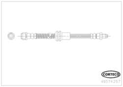 Compare Corteco Brake Hose - 49374257 Part #: 49374257 Line: CCO Corteco Brake Hose 1 Year Limited Warranty Color: Black Hardware Included: No Bracket Included: No Hose Material: EPDM Rubber Overall Length (mm): 480mm Gasket Or Seal Included: No End 1 Fitting Size (mm): M10 End 1 Gender: Female End 2 Gender: Male End 2 Fitting Size (mm): M10 Show More Show Less