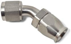 Compare Maximum number of 4 items selected Representative Image Russell -6AN 45 Degree Hose End Fitting - 620411 Part #: 620411 Line: RUS Russell -6AN 45 Degree Hose End Fitting 1 Year Limited Warranty Bend Angle (Deg): 45 Degree Fitting Type: Hose End Fitting Material: Steel Fitting Size: -6AN Color/Finish: Endura Show More Show Less