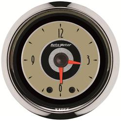 Compare Maximum number of 4 items selected Auto Meter Antique Beige 2-1/16 Inch Clock - 1885 Part #: 1885 Line: AUM Auto Meter Antique Beige 2-1/16 Inch Clock 1 Year Limited Warranty Gauge Size (in): 2-1/16 Inch Gauge Type: Clock Pointer Color: Black Bezel Color: Chrome Illuminated: Yes Range: 12 Hour Face Color: Beige Illumination Type: Incandescent Illumination Color: White Bezel Style: Street Rod Gauge Size (mm): 52mm Movement Type: Quartz Show More Show Less
