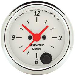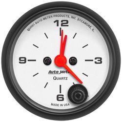 Compare Maximum number of 4 items selected Auto Meter Arctic White 2-1/16 Inch Clock - 1385 Part #: 1385 Line: AUM Auto Meter Arctic White 2-1/16 Inch Clock 1 Year Limited Warranty Gauge Size (in): 2-1/16 Inch Gauge Type: Clock Pointer Color: Fluorescent Red Bezel Color: Chrome Illuminated: Yes Range: 12 Hour Face Color: White Illumination Type: Incandescent Illumination Color: White Bezel Style: Street Rod Gauge Size (mm): 52mm Movement Type: Quartz Show More Show Less