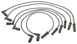 Compare Maximum number of 4 items selected ACDelco Spark Plug Wire Set - 9748QQ Part #: 9748QQ Line: ACD ACDelco Spark Plug Wire Set Limited Lifetime Warranty Diameter (mm): 7mm Core Material: Latex Graphite Noise Suppression: Yes Diameter (in): 1/4 Inch Number Of Wires: 8 Wire Color: Black Wire Separators Included: No Resistance (Ohm/ft): 500 Ohm/Foot Boot Color: Black Number Of Angled Boots: 8 Number Of Straight Boots: 0 Show More Show Less