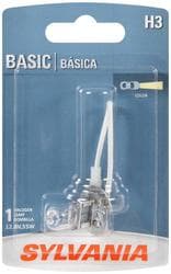 Compare Maximum number of 4 items selected SYLVANIA H3-55W Basic Incandescent Headlight Bulb (Pack of 1) - H3-55WBP Part #: H3-55WBP Line: SYL SYLVANIA H3-55W Basic Incandescent Headlight Bulb (Pack of 1) 1 Year Limited Warranty Industry Number: H3 Bulb Type: Halogen Wattage (W): 55 Watt Amperage (A): 4.3 Amp Voltage (V): 12.8 Volt Light Output (Lumens): 1521 Lumen Color: Clear Street Legal: Yes Bulb Diameter (in): 7/16 Inch Number Of Filaments: 1 SAE/DOT Compliant: Yes Base Type: PK22 Bulb Color: White Color Temperature (Kelvin): 3200K Show More Show Less