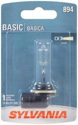 Compare Maximum number of 4 items selected SYLVANIA 894 Basic Halogen Fog Light Bulb (Pack of 1) - 894BP Part #: 894BP Line: SYL SYLVANIA 894 Basic Halogen Fog Light Bulb (Pack of 1) 1 Year Limited Warranty Industry Number: 894 Bulb Type: Halogen Wattage (W): 37.5 Watt Amperage (A): 3.13 Amp Voltage (V): 12.8 Volt Light Output (Lumens): 754 Lumen Bulb Family: HAL Color: Clear Street Legal: Yes Bulb Diameter (in): 7/16 Inch Number Of Filaments: 1 SAE/DOT Compliant: Yes Base Type: PGJ13 Bulb Color: White Color Temperature (Kelvin): 3200K Show More Show Less