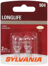 Compare Maximum number of 4 items selected SYLVANIA 904 Long Life Incandescent Mini Bulb (Pack of 2) - 904LLBP Part #: 904LLBP Line: SYL SYLVANIA 904 Long Life Incandescent Mini Bulb (Pack of 2) 1 Year Limited Warranty Bulb Family: T5 Color: Clear Voltage (V): 13.5 Volt Wattage (W): 9.3 Watt Amperage (A): 0.69 Amp Street Legal: Yes Number Of Filaments: 1 Bulb Type: Incandescent Light Center Length (in): 13/16 Inch Base Type: Wedge Bulb Color: White Industry Number: 904 Light Output (Lumens): 50 Lumen Color Temperature (Kelvin): 2800K Show More Show Less