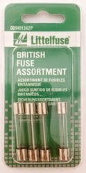 Littelfuse Fuse Assortment - 094134 Part #: 094134 Line: LIT Littelfuse Fuse Assortment Manufacturer's Defect Warranty Quantity: 4 Voltage (V): 32 Volt Amperage (A): 7.5, 15, 20 Amp Fuse Type: Glass Show More Show Less