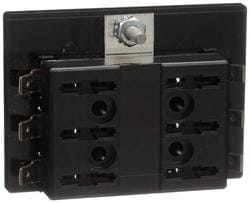 Compare Maximum number of 4 items selected Standard Ignition 30 Amp Fuse Block - FH28 Part #: FH28 Line: STD Standard Ignition 30 Amp Fuse Block Limited Lifetime Warranty Amperage (A): 30 Amp Voltage (V): 6, 12, 24 Volt Color: Black Terminal Type: Blade, Stud Connector Gender: Female Terminal Gender: Male Number Of Fuses: 6 Number Of Terminals: 7 Number Of Connectors: 7 Show More Show Less