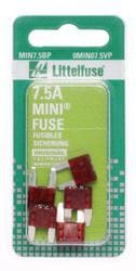 Compare Maximum number of 4 items selected Littelfuse Blister Pack 7.5 Amp Fuse - MIN7.5BP Part #: MIN7.5BP Line: LIT Littelfuse Blister Pack 7.5 Amp Fuse 1 Year Limited Warranty Amperage (A): 7.5 Amp Voltage (V): 32 Volt Fuse Type: Mini