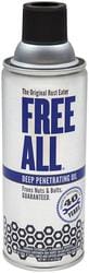 Compare Maximum number of 4 items selected Free All 11 Ounce Deep Penetrating Oil - RE12 Part #: RE12 Line: FAL Free All 11 Ounce Deep Penetrating Oil Manufacturer's Defect Warranty Actual Net Contents: 11 Ounce Type: Penetrant Flammable: Yes Flash Point (Deg F): 104 Degree (F) Container Type: Can VOC Percent By Volume: 23 Percent Show More Show Less