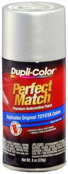 Compare Maximum number of 4 items selected Dupli-Color Perfect Match 8 Ounce Silver Metallic Touch-Up Paint Aerosol - BTY1530 Part #: BTY1530 Line: DPL Dupli-Color Perfect Match 8 Ounce Silver Metallic Touch-Up Paint Aerosol 30 Day Limited Warranty Make: Toyota Paint Code: 147, 148, 040 Color: Silver Metallic Applicator Type: Aerosol Paint Type: Acrylic Lacquer Type: Aerosol Actual Net Contents: 8 Ounce Show More Show Less