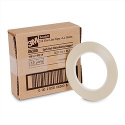 Compare Maximum number of 4 items selected 3M Line Tape - 6300 Part #: 6300 Line: MMM 3M Line Tape 1 Year Limited Warranty Color: Green Length (ft): 180 Foot Width (in): 1/8 Inch Quantity: 1 Type: Fine Line CSA Certified: No Material: Polypropylene Waterproof: No Show More Show Less