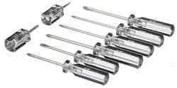 Compare Maximum number of 4 items selected Performance Phillips, Slotted, Star Screwdriver Set - W80008 Part #: W80008 Line: PFM Performance Phillips, Slotted, Star Screwdriver Set Limited Lifetime Warranty Tip Type: Phillips, Slotted, Star Quantity: 8 Length (in): 1-1/2, 3, 4 Inch Bit Size (T): T15, T20 Bits Included: Yes Slotted Bit Size: 3/16, 1/4 Inch Bit Size (PH): PH1, PH2 Show More Show Less