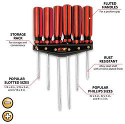 Power Torque PH0 X 3, PH1 X 3, PH1 X 6, PH2 X 1-1/2, PH2 X 4, PH2 X 6, PH3 X 6 SAE Screwdriver Set - GM7718PT