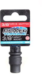 Compare Maximum number of 4 items selected Power Torque 3/8 Inch Socket 3/8 Inch Drive 6 Point - GM7740 Part #: GM7740 Line: PTT Power Torque 3/8 Inch Socket 3/8 Inch Drive 6 Point Limited Lifetime Warranty Drive Size (in): 3/8 Inch Socket Size (in): 3/8 Inch Number Of Points: 6 Material: Steel Overall Length (in): 1-3/16 Inch SAE Or Metric: SAE Socket Type: Impact ASME Specification: Yes Show More Show Less