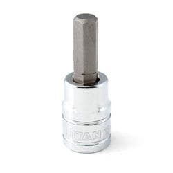 Compare Maximum number of 4 items selected Titan 6mm Socket 3/8 Inch Drive - 15606 Part #: 15606 Line: TTN Titan 6mm Socket 3/8 Inch Drive Limited Lifetime Warranty Drive Size (in): 3/8 Inch Socket Size (in): 3/8 Inch Socket Size (mm): 6mm Locking: No Magnetic: No Material: Chromium-Vanadium, S2 Tool Steel Length (in): 4-3/8 Inch Overall Length (in): 1-7/8 Inch SAE Or Metric: Metric Socket Depth: Standard Socket Type: Bit Bit Size (mm): 6mm Knurled: No Bit Length (in): 4-3/8 Inch Storage Tray Included: No Wobble: No Impact: No Show More Show Less