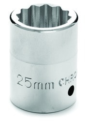 Compare Maximum number of 4 items selected Power Torque 25mm Socket 1/2 Inch Drive Standard 12 Point - GM6245 Part #: GM6245 Line: PTT Power Torque 25mm Socket 1/2 Inch Drive Standard 12 Point Limited Lifetime Warranty Drive Size (in): 1/2 Inch Socket Size (mm): 25mm Number Of Points: 12 Material: Chromium-Vanadium Steel Overall Length (in): 1-9/16 Inch SAE Or Metric: Metric Socket Depth: Standard Socket Type: Regular ASME Specification: Yes Show More Show Less