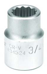 Compare Performance 3/4 Inch Socket 3/4 Inch Drive 12 Point - W34524 Part #: W34524 Line: PFM Performance 3/4 Inch Socket 3/4 Inch Drive 12 Point Limited Lifetime Warranty Socket Size (in): 3/4 Inch Number Of Points: 12 Drive Size (in): 3/4 Inch