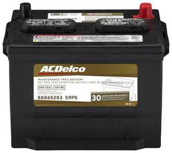 Compare Maximum number of 4 items selected ACDelco Standard Flooded Top Post Battery Group Size 59 590 CCA 100 Minute RC - 59PS Part #: 59PS Line: ACD ACDelco Standard Flooded Top Post Battery Group Size 59 590 CCA 100 Minute RC 30 MONTH LIMITED WARRANTY Group Size (BCI): 59 Length (in): 9-1/2 Inch Width (in): 7-3/8 Inch Cold Cranking Amps (CCA): 590 CCA Cranking Amps (CA): 730 CA Reserve Capacity (min): 100 Minute Voltage (V): 12 Volt Battery Type: Standard Flooded Terminal Type: Top Post Positive Terminal Location: Top Left Height (in): 7-5/8 Inch Height (mm): 194mm Length (mm): 242mm Width (mm): 189mm Weight (Lbs): 32.6 Lbs. Amp Hour (Ah): 55 AH Add Acid And Charge Required: No Show More Show Less