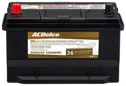 Compare Maximum number of 4 items selected ACDelco Standard Flooded Top Post Battery Group Size 65 775 CCA 150 Minute RC - 65AGMHRC Part #: 65AGMHRC Line: ACD ACDelco Standard Flooded Top Post Battery Group Size 65 775 CCA 150 Minute RC 3 Year Limited Warranty Group Size (BCI): 65 Length (in): 11-13/16 Inch Width (in): 7-3/8 Inch Cold Cranking Amps (CCA): 775 CCA Cranking Amps (CA): 960 CA Reserve Capacity (min): 150 Minute Voltage (V): 12 Volt Battery Type: Standard Flooded Terminal Type: Top Post Positive Terminal Location: Top Left Height (in): 7-1/2 Inch Height (mm): 190mm Length (mm): 300mm Width (mm): 187mm Weight (Lbs): 45.9 Lbs. Amp Hour (Ah): 70 Ah Show More Show Less