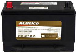 Compare Maximum number of 4 items selected ACDelco Top Post Battery Group Size 65 680 CCA 140 Minute RC - 65GA Part #: 65GA Line: ACD ACDelco Top Post Battery Group Size 65 680 CCA 140 Minute RC 30 MONTH LIMITED WARRANTY Group Size (BCI): 65 Length (in): 11-5/8 Inch Width (in): 7-3/8 Inch Cold Cranking Amps (CCA): 680 CCA Cranking Amps (CA): 850 CA Reserve Capacity (min): 140 Minute Voltage (V): 12 Volt Terminal Type: Top Post Positive Terminal Location: Top Left Front Height (in): 7-5/8 Inch Height (mm): 192mm Length (mm): 294mm Width (mm): 187mm Weight (Lbs): 40.2 Lbs. Amp Hour (Ah): 80 Ah Show More Show Less